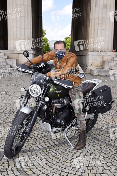 Schauspieler, Comedian, Erkan Maria Moosleitner, Erkan und Stefan, Motorrad, Triumph, Prominenz, Celebrity, Celebrities, Fotoshooting, Photoshooting, Fototermin, Unterhaltung, Entertainment