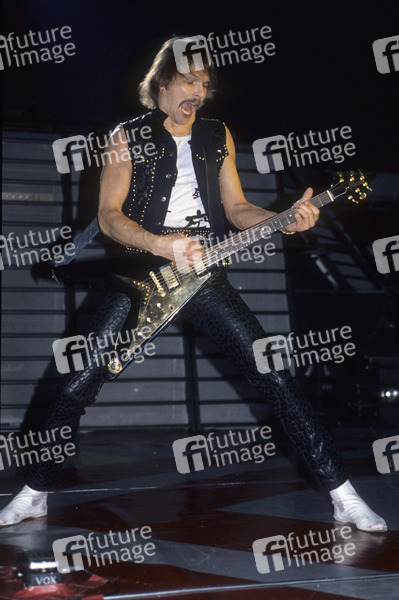 Rudolf Schenker von den Scorpions live im Hammersmith Odeon. London, 01.02.1984
