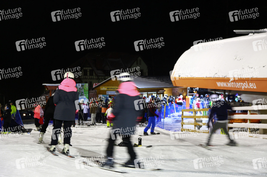 Großer Menschenandrang bis zum Abend auf den Skipisten im niederschlesischen Karpacz (Krummhübel), einen Tag vor dem harten Lockdown in Polen (28.12.2020-17.01.2021). Karpacz, 27.12.2020