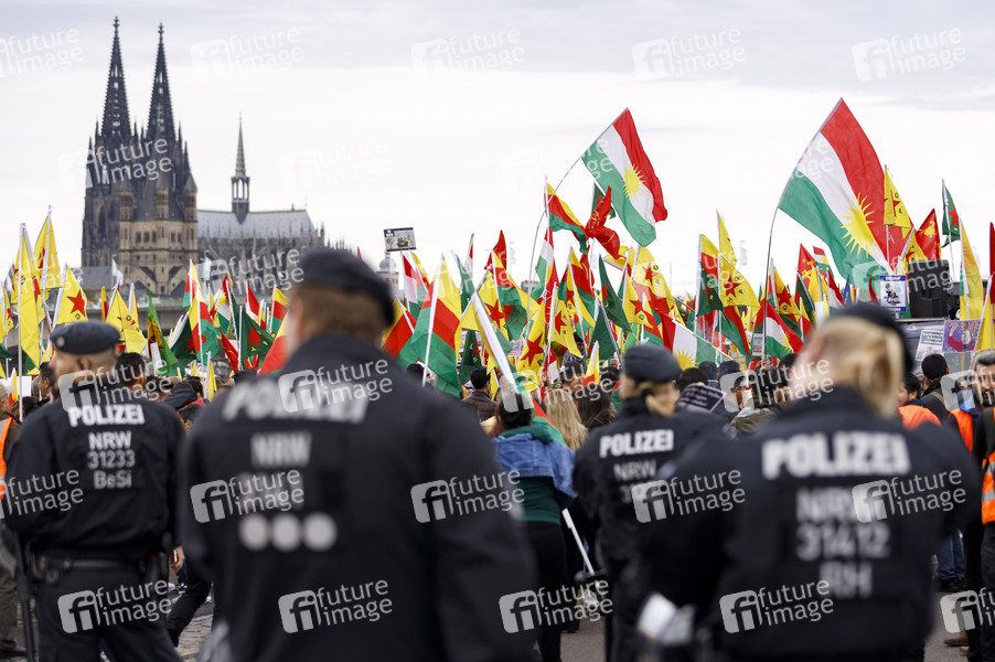 Polizei, Hundertschaft, Polizeieinsatz, Polizei-Überstunden, Polizeibeamte, Polizeibeamter, Polizei-Hundertschaft, Innere Sicherheit, Innenpolitik, Uniform, Polizei-Uniform, Polizeiuniform, Polizei NRW, Polizei Köln, Einsatzhundertschaft, Polizeikräfte, Polizeipräsenz, Polizeiarbeit, Polizeiaufgebot, Dienstwaffenträger, Dienst an der Waffe, Bereitschaftsdienst, Sicherheitsmaßnahmen, Landespolizei, Streifendienst, Polizeilaufbahn, Polizeiausbildung, Bereitschaftspolizei, Sicherheit, Polizeimaßnahme, Polizeikette, Polizeikräfte, Polizeiuniform, Polizeidienst, Polizisten, Polizist, Gewaltmonopol, Polizeibeamte, Kennzeichnungspflicht, Polizeigesetz, Einsatzbelastung, Landespolizei, Kurdendemo, Kurden-Demonstration, NavDem, Nav-Dem, YPG, demokratisches Gesellschaftszentrum der Kurdinnen in Deutschland, PKK, Apo, kurdische Arbeiterpartei, Anti-Erdogan-Demo, Pro Abdullah Öcalan, Kurdistan, Demo, Demonstration, Demonstranten, Politik, Kurden, Kurde, kurdisch, Protest, Aktion, Demo gegen Erdogan, Fahne, Flaggen, Afrin, Syrien, Militäroffensive in Syrien, ISIS, IS, IS Terror, Türkei, NATO, Invasion, Versammlungsrecht, Nord-Syrien, Symbolbild, Symbolfoto