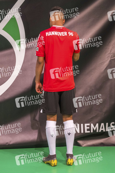 Linton Maina mit rotem Heimtrikot bei der Präsentation der Hannover 96-Trikots des neuen Ausrüsters Macron für die Saison 2019/20 in der HDI Arena. Hannover, 16.06.2019