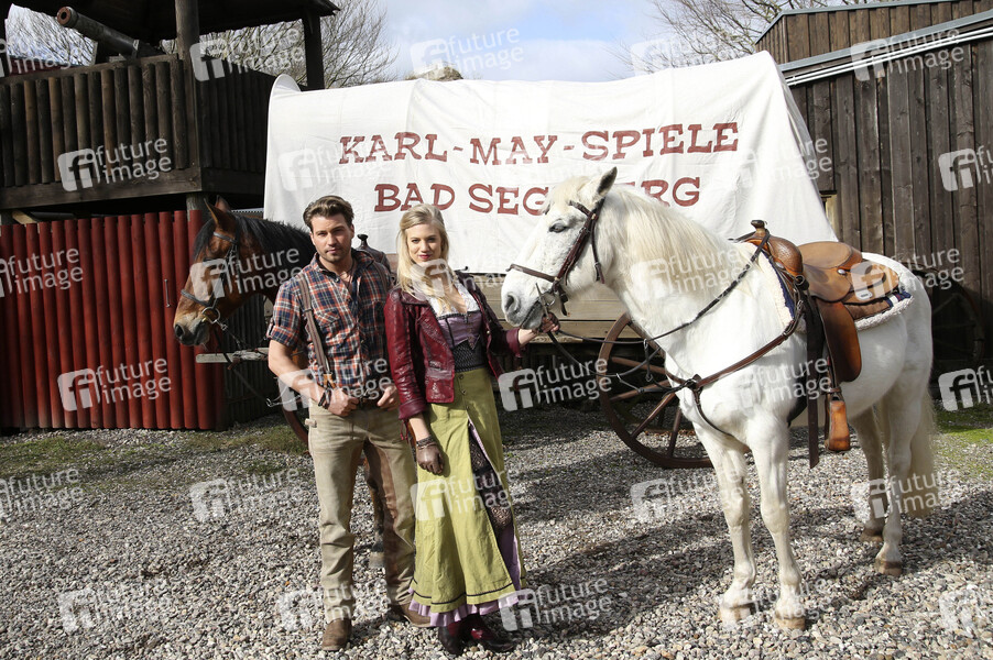 Raul Richter und Larissa Marolt beim Pressetermin zur Vorstellung des neuen Winnetou und der Gaststars der Karl-May-Spiele 2019 im Indian Village. Bad Segeberg, 08.03.2019