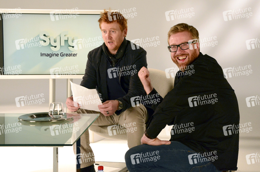 Tony Curran und Elmar Krick beim Dreh für einen Promotion-Spot für die TV-Serie 'Defiance' in den Voss TV Studios. Düsseldorf, 30.05.2014