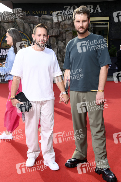 Maurice Gajda mit Freund Michael Barg bei der Premiere des Kinofilms 'Jurassic World: Rebirth / Jurassic World: Die Wiedergeburt' im Zoo Palast. Berlin, 18.06.2025
