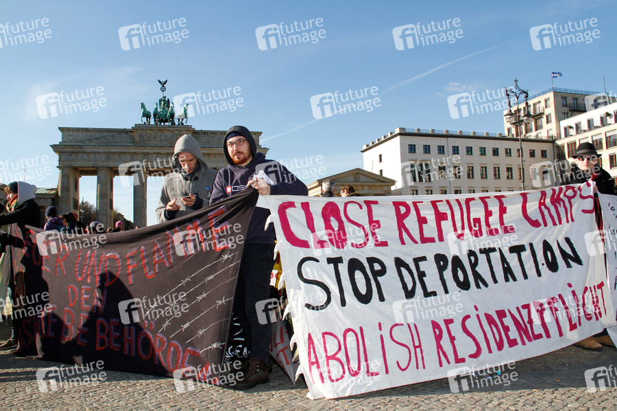 Flüchtlinge und Aktivisten, die vor dem Brandenburger Tor für eine neue Asylpolitik demonstrieren, werden von Politkerinnen der Piratenpartei unterstützt, Berlin