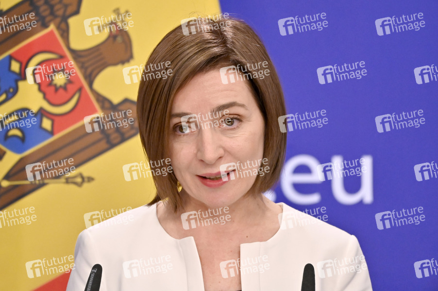 Maia Sandu bei einer Pressekonferenz zum EU-Assoziierungsabkommen mit der Republik Moldau lim Europäischen Parlament. Brüssel, 18.05.2022