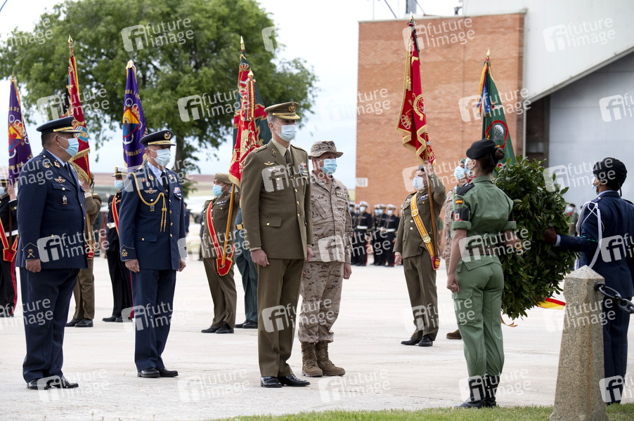 König Felipe VI. von Spanien beim Ehrenempfang auf der Torrejón Air Base für die letzten Soldaten die aus ihrem Einsatz in Afghanistan zurück kommen,. Die Beteiligung Spaniens am Krieg in Afghanistan begann am 27. Dezember 2001. Torrejón de Ardoz, 13.05.2021