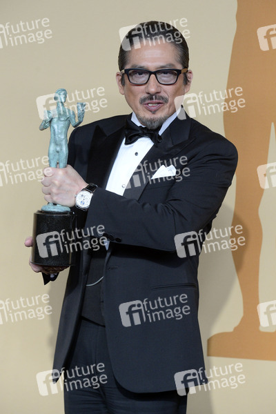 Hiroyuki Sanada mit dem Preis für den besten Hauptdarsteller in der TV-Drama-Serie 'Shōgun' beim Preisträger-Photocall der 31. Screen Actors Guild Awards 2025 im Shrine Auditorium and Expo Hall. Los Angeles, 23.02.2025