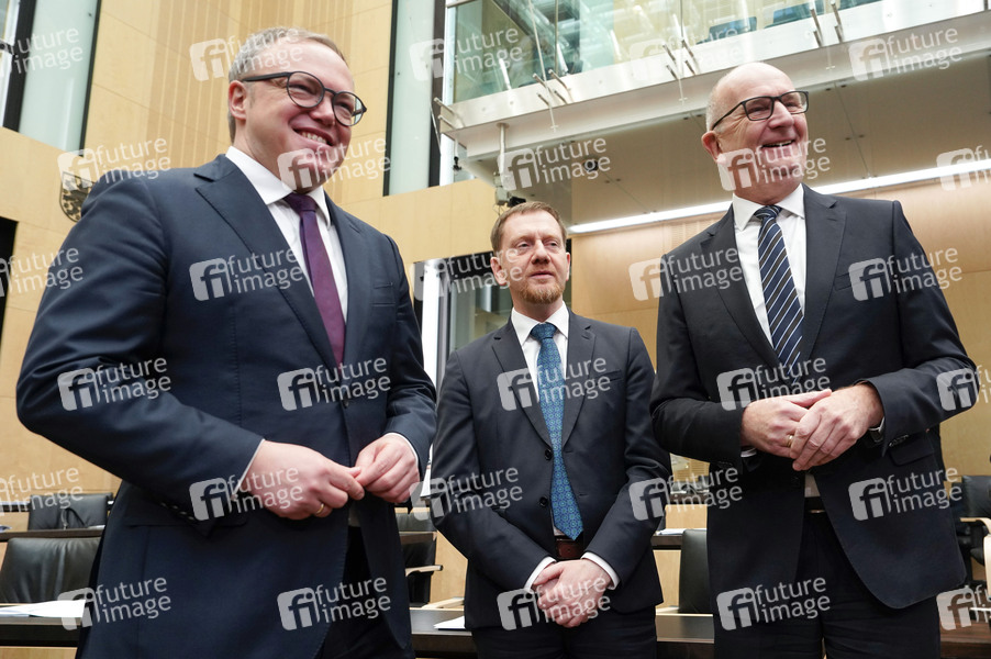 Mario Voigt, Michael Kretschmer und Dietmar Woidke in der 1050. Sitzung des Bundesrates im Plenarsaal des Preußischen Herrenhauses. Berlin, 20.12.2024