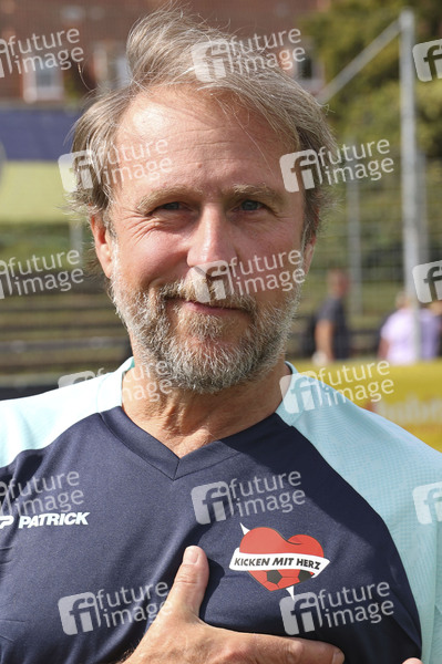 Bjarne Mädel beim Benefiz-Fußballspiel 'Kicken mit Herz' 2023 zu Gunsten des Herzzentrums des UKE im Stadiun Hoheluft. Hamburg, 03.09.2023