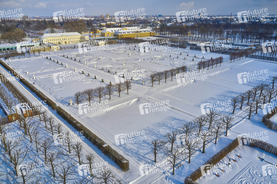 Luftaufnahme, Großer Garten, Barockgarten, Sehenswürdighkeit, Sightseeing, Tourismus, Veranstaltungsort, Berggarten, Winter, Schnee