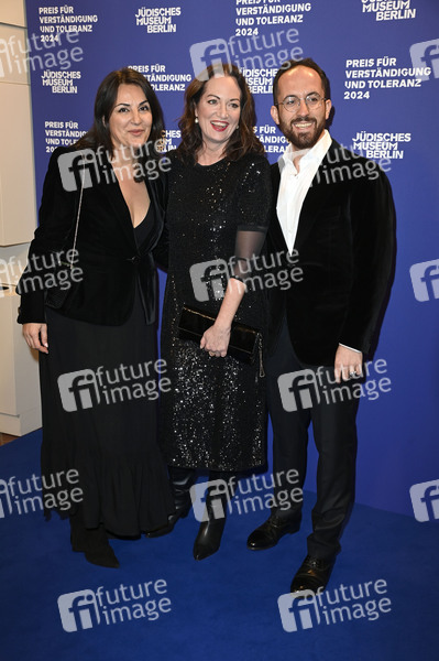 Düzen Tekkal, Natalia Wörner und Igor Levit bei der 23. Verleihung des Preises für Verständigung und Toleranz 2024 im Glashof des Jüdischen Museums. Berlin, 16.11.2024