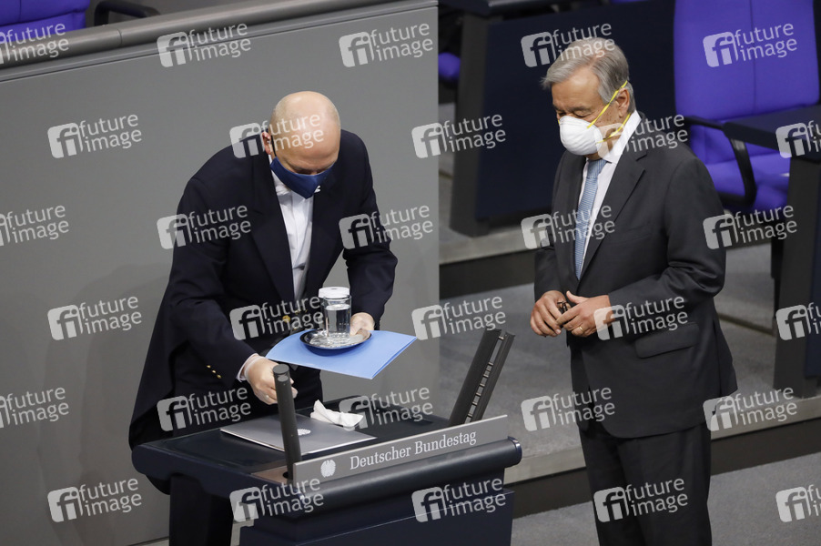 Antonio Guterres bei der Rede anlässlich 75 Jahre Vereinte Nationen im Plenum im Reichstagsgebäude. Berlin, 18.12.2020