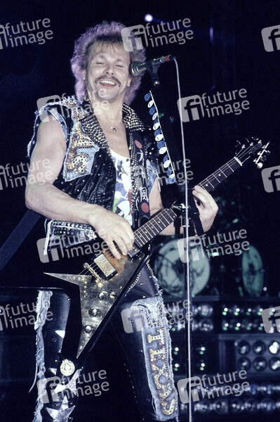 Rudolf Schenker von den Scorpions live bei einem Konzert der 'Savage Amusement World Tour 88-90' im Hammersmith Odeon. London, 20.02.1989