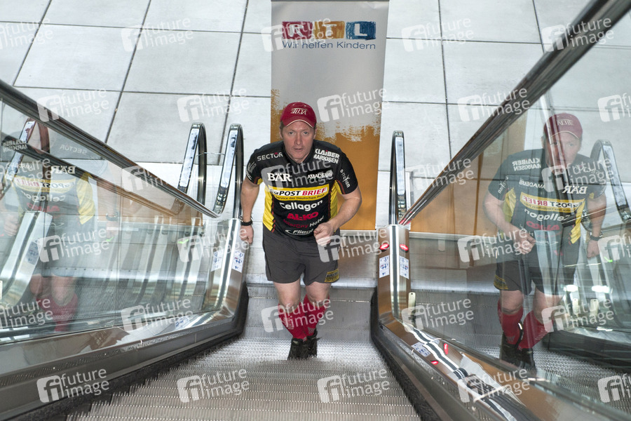 Pressetermin zum Guinness Weltrekord-Versuch. Joey Kelly will parallel zum RTL-Spendenmarathon eine herunterfahrende Rolltreppe 24 Stunden lang hochsteigen im RTL-Gebäude, Köln