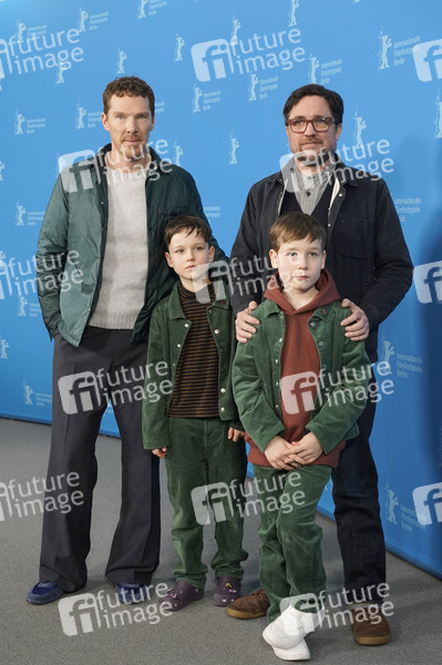Benedict Cumberbatch, Richard Boxall, Henry Boxall und Dylan Southern beim Photocall zum Kinofilm 'The Thing with Feathers' auf der Berlinale 2025 / 75. Internationale Filmfestspiele Berlin im Hotel Grand Hyatt. Berlin, 18.02.2025