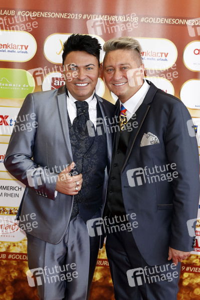 Matthias Mangiapane und Hubert Fella bei der Verleihung der Goldenen Sonne 2019 während der Sonnenklar.TV Gala im Wunderland Kalkar. Kalkar, 27.04.2019