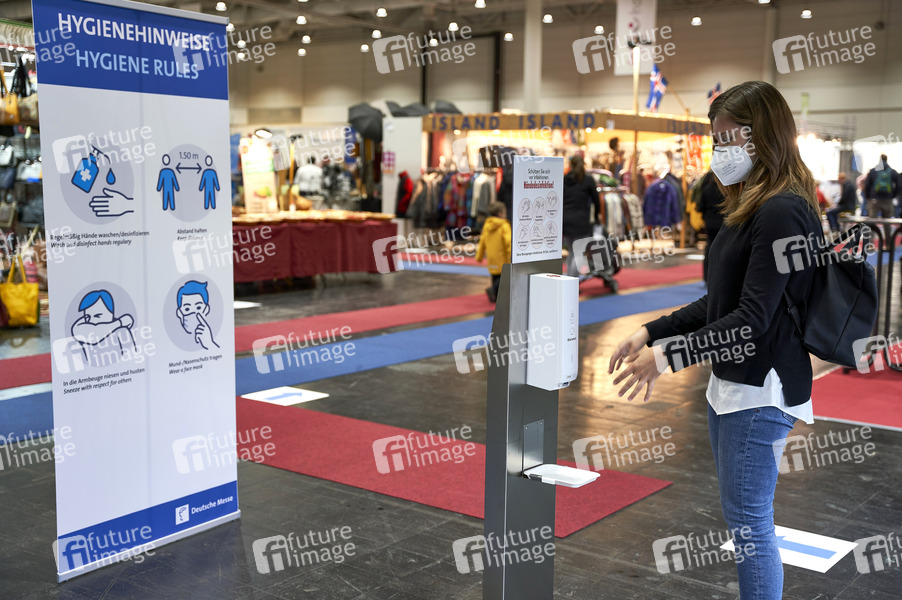 Verbrauchermesse, Ausstellung, Fair, Messe, Präsentation, Corona, Sars-CoV-2, Covid-19, Coronavirus, Coronaviren, Corona-Virus, Coronakrise, Corona-Krise, Corona-Pandemie, Coronamaßnahmen, Abstand, Abstandhalten, Abstandsregel, Abstandsregeln, Atemschutz, Atemschutzmaske, Virenschutz, Schutzmaske, Mundschutzpflicht, Maskenpflicht, Mundschutz-Pflicht, Mund-Nase-Schutz, Mund-Nasen-Schutz, MNS