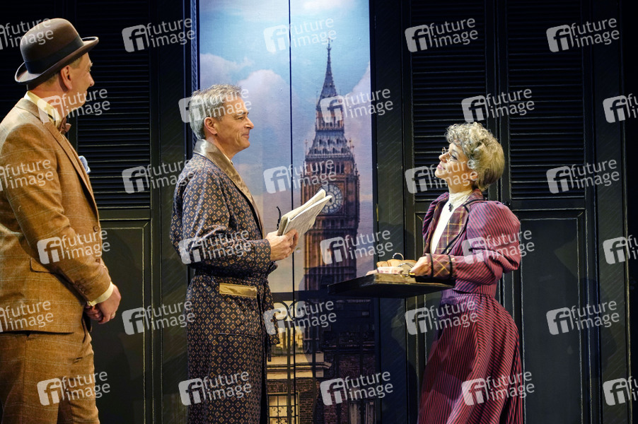 Oliver Dupont, Jan Sosniok und Anna Julia Antonucci bei der Fotoprobe zum Theaterstück 'Sherlock Holmes: Der Fall Moriarty' in der Komödie am Kurfürstendamm im Ernst-Reuter-Saal. Berlin, 06.03.2025