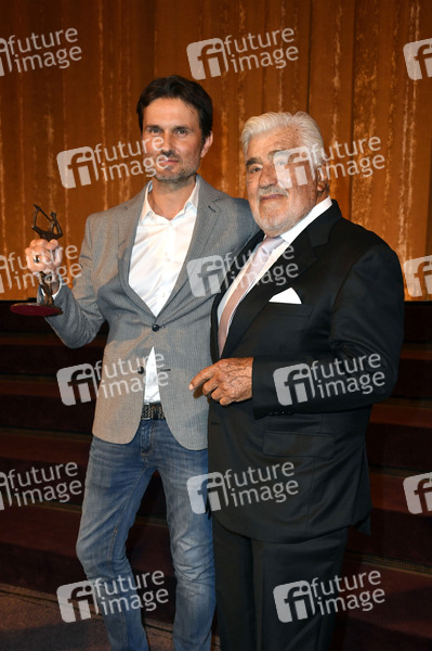 Simon Verhoeven und Mario Adorf bei der 63. Verleihung vom Ernst-Lubitsch-Preis 2021 in der Astor Film Lounge. Berlin, 28.09.2021