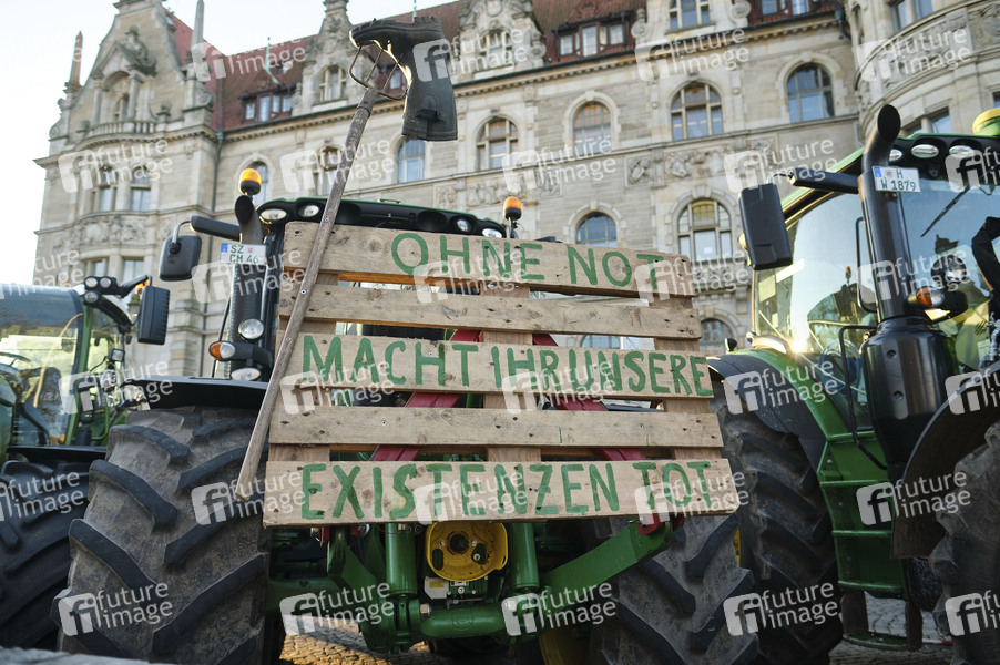 Treckerdemonstration 'Land schafft Verbindung' gegen die neue Düngeverordnung und strengere Vorgaben zum Arten- und Tierschutz von niedersächsischen Landwirten auf dem Trammplatz vor dem Rathaus. Hannover, 17.01.2020