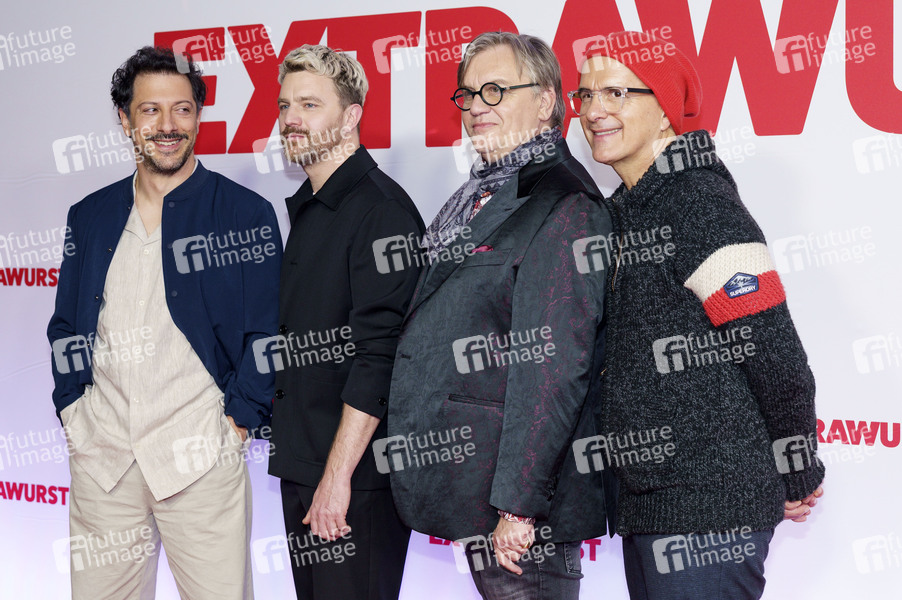 Fahri Yardim, Friedrich Mücke, Hape Kerkeling und Christoph Maria Herbst bei der Premiere des Kinofilms 'Extrawurst' im Mathäser Filmpalast. München, 08.01.2026