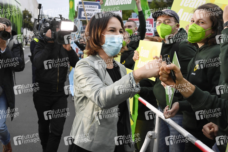 Politik, Wahl, Wahlkampf, Partei, Wahlkampfveranstaltung, Parteienwerbung, Kampagne, Wahlen, Bundestagswahlkampf, Bundestagswahl, Bundestagswahlen, TV-Triell, TV-Duell, Talk, Gespräch, Talkrunde, Gesprächsrunde, Diskussion, TV, Fernsehen, Politikerin, Kandidatin, Kanzlerkandidatin, MdB, Mitglied des Bundestages, Bundesvorsitzende Bündnis 90/Die Grünen