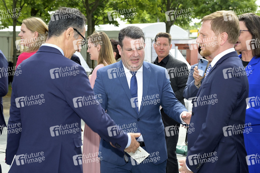 Cem Özdemir, Hubertus Heil und Michael Kretschmer beim Staatsakt zu 75 Jahre Grundgesetz auf dem Forum zwischen Bundestag und Kanzleramt. Berlin, 23.05.2024