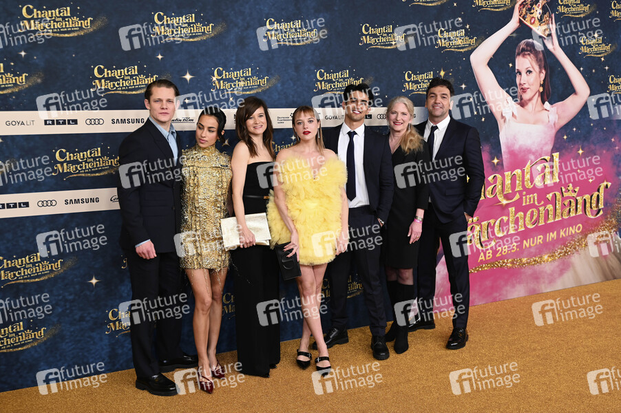 Max von der Groeben, Gizem Emre, Lena Schömann, Jella Haase, Mido Kotaini, Judith Erber und Bora Dagetkin bei der Weltpremiere des Kinofilms 'Chantal im Märchenland' im Mathäser Filmpalast. München, 25.03.2024