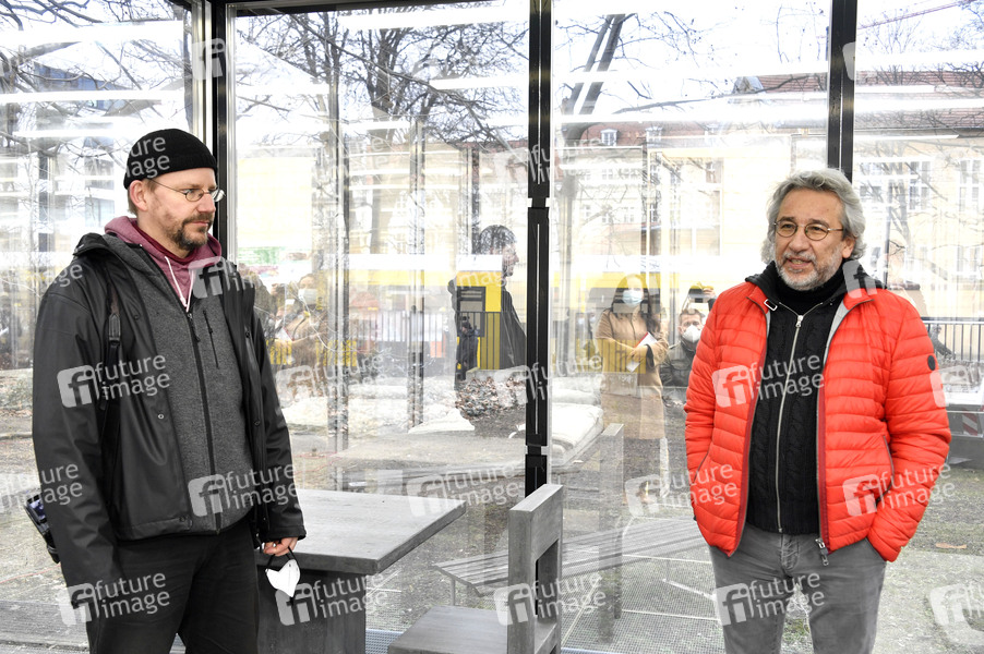 Peter Steudtner und Can Dündar bei der Pressekonferenz des KulturForum TürkeiDeutschland zur Solidarität mit den gesamten demokratischen Kräften in der Türkei, insbesondere mit inhaftierten Schriftsteller*innen, Künstler*innen, Journalist*innen, Gewerkschafter*innen und Politiker*innen vor dem Maxim Gorki Theater. Berlin, 23.03.2021