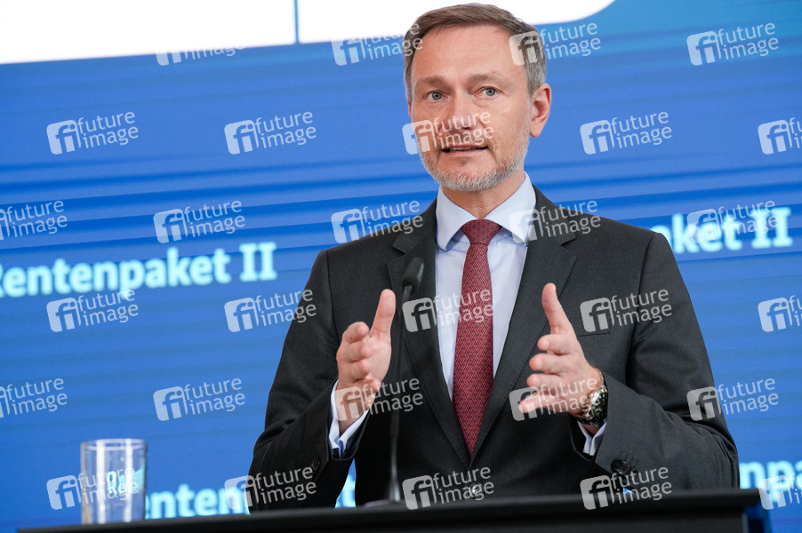Christian Lindner bei der Vorstellung des Rentenkonzepts der Bundesregierung Rentenpaket II im Bundesministerium für Arbeit und Soziales. Berlin, 05.03.2024