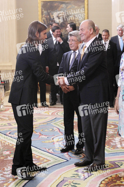 König Juan Carlos und Königin Sophia empfangen Spieler und Funktionäre von Atletio Madrid im Palacio de la Zarzuela, Madrid