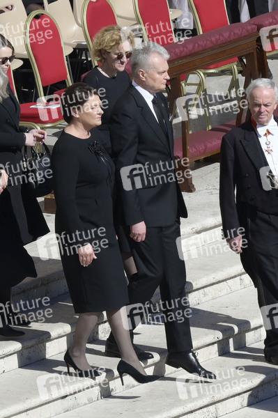 Gitanas Nauseda mit Ehefrau Diana Nausediene bei der Trauermesse für den verstorbenen Papst Franziskus auf dem Petersplatz. Vatikanstadt, 26.04.2025