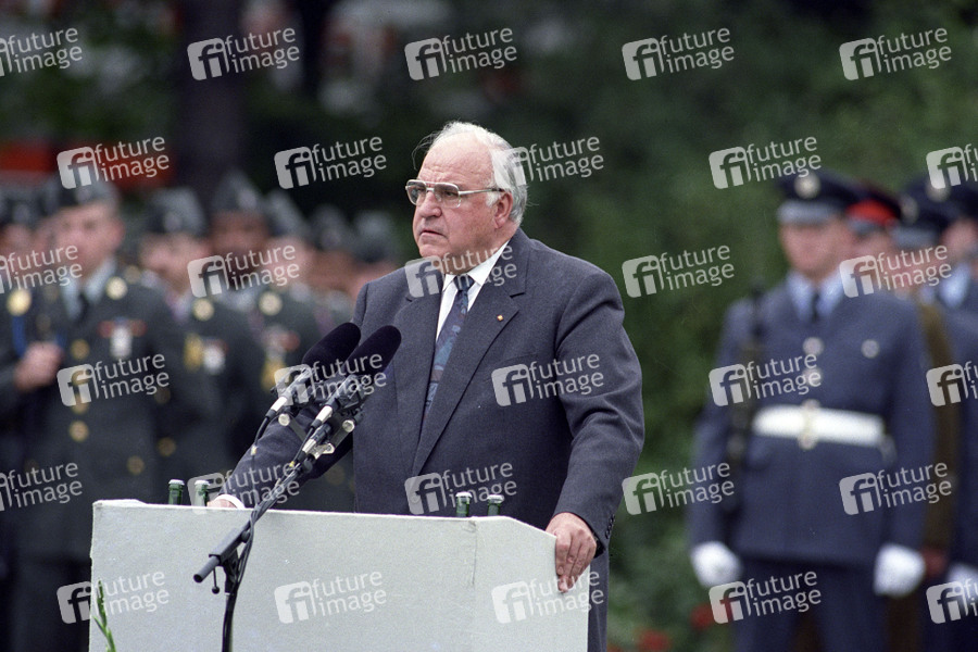 Politiker, CDU, 1982-1998 der sechste Bundeskanzler der Bundesrepublik Deutschland, Politik, Außenpolitk, Staatsbesuch, Verabschiedung, Besatzungszeit, Besatzungsmacht, Siegermacht, Armee, Soldaten, Uniform, Parade, Militär, Berlin-Brigade, Streitkräfte, Alliierte, Kbsw, Militärparade, Abrüstung, Zeitgeschichte, Zeitgeschehen