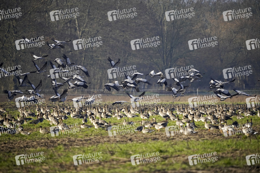 Kraniche und Wildgänse auf einem Feld Werben, 30.11.2019