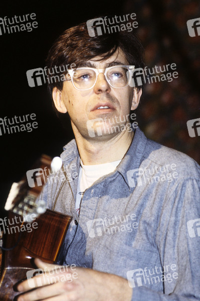 Simon Jeffes vom Penguin Cafe Orchestra beim Soundcheck im Mermaid Theatre. London, 16.12.1984