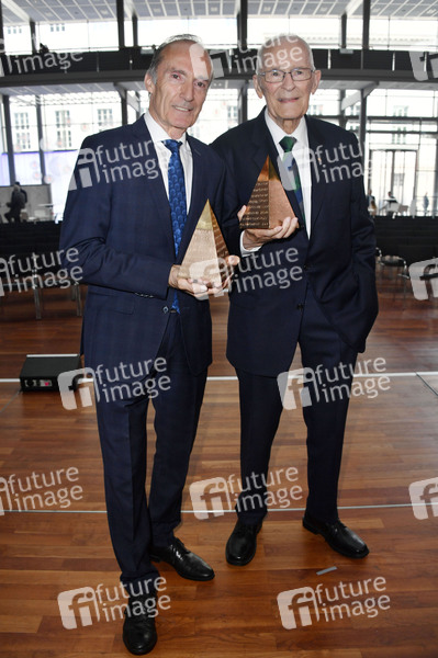 Eberhard Gienger und Hans Wilhelm Gäb bei der Verleihung der Goldenen Sportpyramide 2022 in der Hauptstadtrepräsentanz der Deutschen Telekom AG. Berlin, 20.05.2022