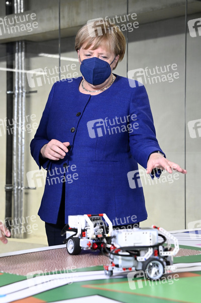 Angela Merkel beim Rundgang durch das TUMO Lernzentrum zur Förderung der digitalen Bildung von Jugendlichen in Berlin-Charlottenburg. Berlin, 22.11.2021