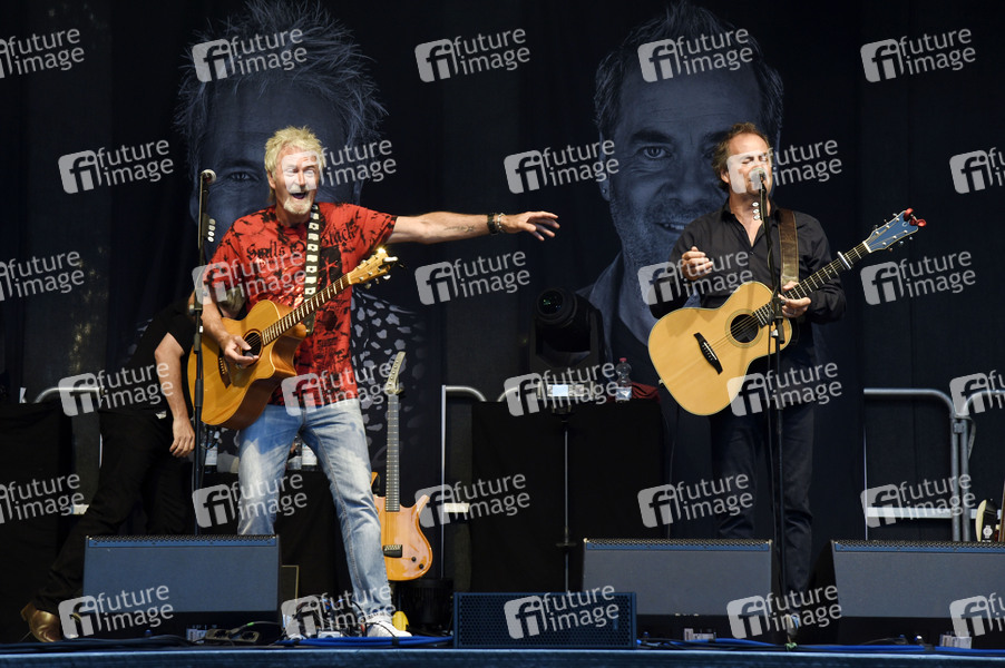 Pete Lincoln und Mick Wilson von Frontm3n live beim Open Air Konzert im Kurpark in Bad Aibling. 13.08.2021