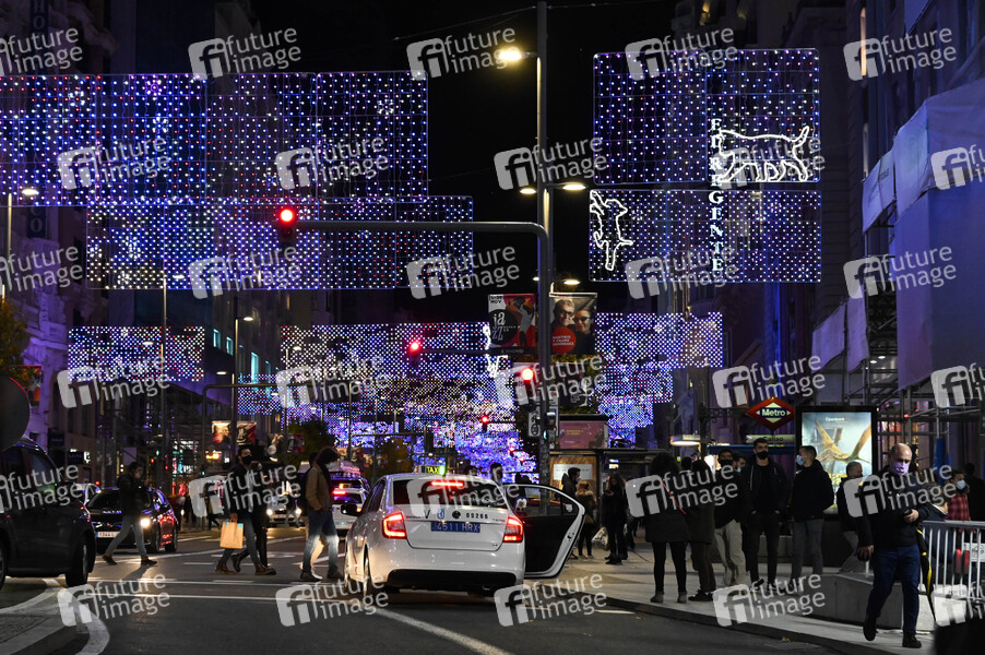 Einschalten der traditionellen Weihnachtsbeleuchtung im Stadtzentrum. Madrid 26.11.2020
