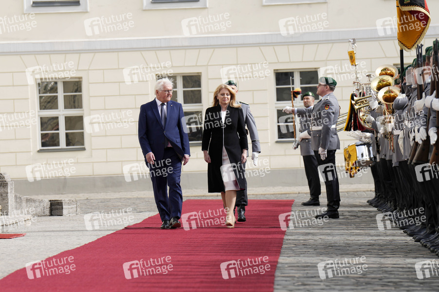 Frank-Walter Steinmeier und Zuzana Caputova beim Empfang der Präsidentin der Slowakischen Republik mit militärischen Ehren im Schloss Bellevue. Berlin, 09.04.2024