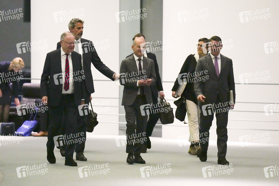Politik, Kanzleramt, Bundeskanzleramt, Pressekonferenz, Pressestatement, Ministerpräsidentenkonferenz, MPK, Politiker, Bundeskanzler, Ministerpräsident von Hessen, Ministerpräsident von Niedersachsen