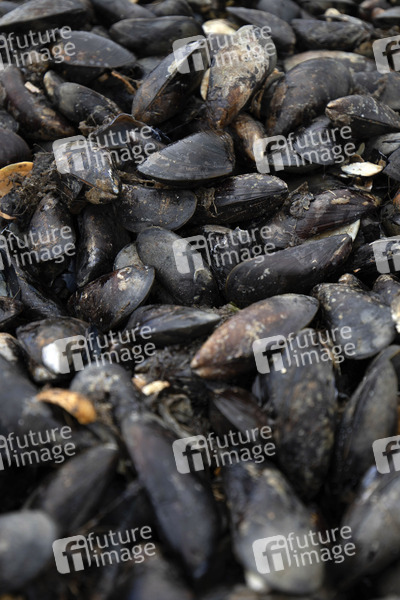 Gemeine Miesmuschel, Muscheln, Mytilidae, Mytilus edulis, Gehäuse, Speise, Miesmuschelbänke, Muschelfleisch, blutdrucksenkend, gewichtsreduzierend, Nährstoffe, Weichtiere, Muschelgerichte, Muschelvergiftung, Symbolbild, Themenbild