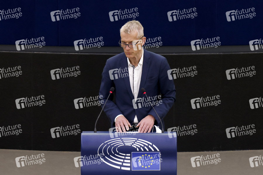 Helmut Scholz im Plenarsaal des Europäischen Parlaments. Straßburg, 10.03.2022