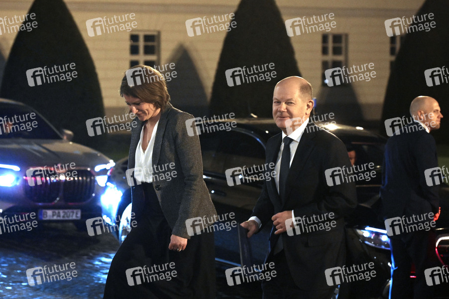 Dörte Dinger und Olaf Scholz nach der Vertrauensfrage im Bundestag bei der Ankunft beim Bundespräsidenten im Schloss Bellevue. Berlin, 16.12.2024