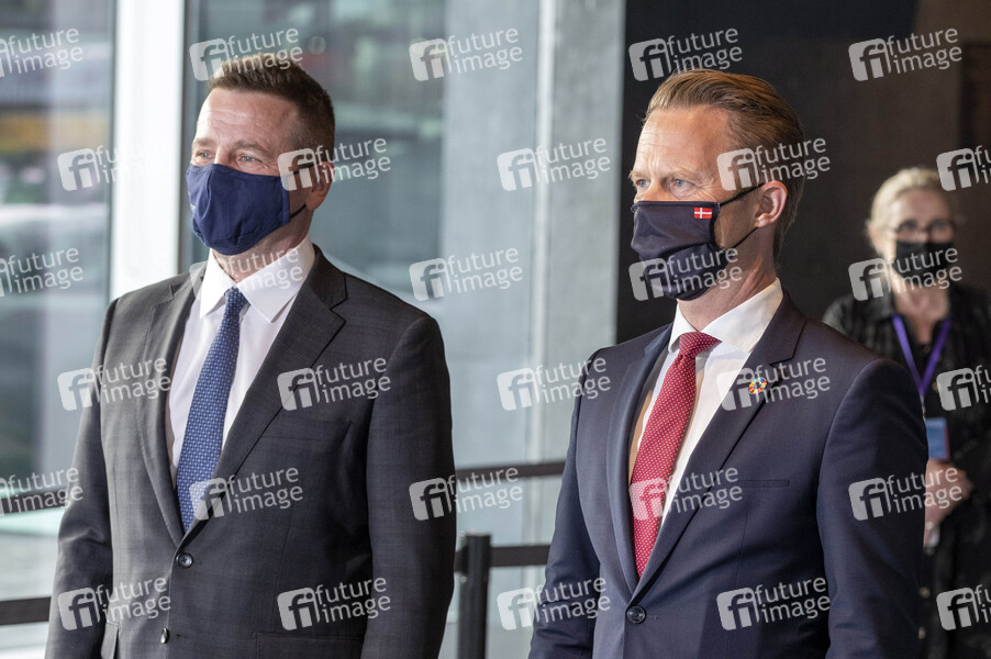Außenminister Gudlaugur Thor Thordarson (Island) und Außenminister Jeppe Kofod (Dänemark) beim Treffen der Außeminister anlässlich der Sitzung des Arktischen Rates in der Harpa. Reykjavik, 20.05.2021
