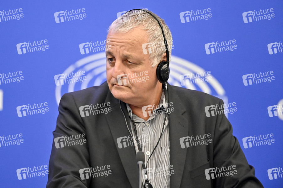 Francois Alfonsi bei einer Pressekonferenz zur Bedrohung durch ISIS in Nord- und Ostsyrien, die Situation von ISIS-Familien im Lager Al-Hol und die Verantwortung Europas im Europäischen Parlament. Straßburg, 13.09.2022