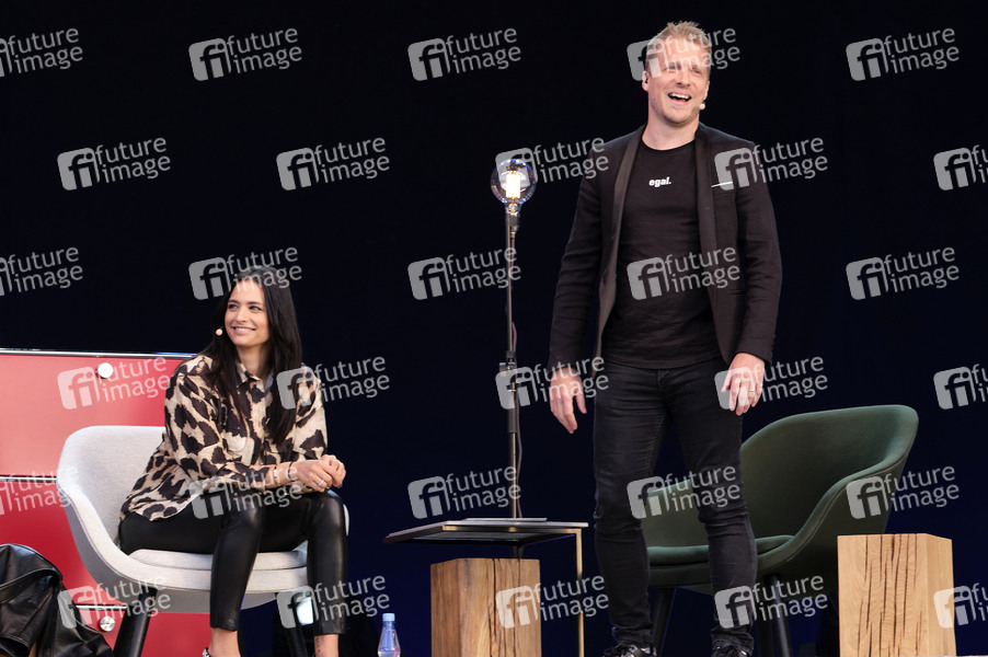 Oliver Pocher mit Ehefrau Amira Pocher bei der ersten Autokultur-Veranstaltung 'Die Pochers hier' auf dem Schützenplatz. Die Besucher verfolgen unter Berücksichtigung klarer Hygiene-Vorschriften während der Corona-Krise den Auftritt aus dem Auto. Hannover, 07.05.2020