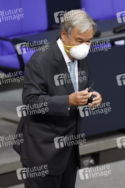 Antonio Guterres bei der Rede anlässlich 75 Jahre Vereinte Nationen im Plenum im Reichstagsgebäude. Berlin, 18.12.2020