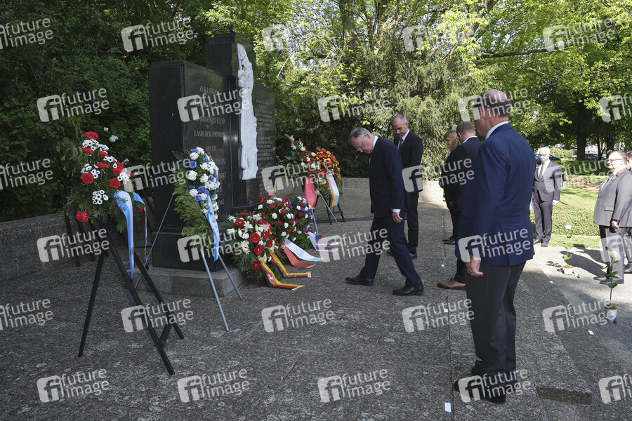 Stephan Weil, Belit Onay und Michael Fürst bei der Gedenkfeier zum Tag der Befreiung - 75. Jahrestag der Kapitulation des Nationalsozialistischen Deutschlands auf dem Ehrenfriedhof am Maschsee-Nordufer. Hannover, 08.05.2020